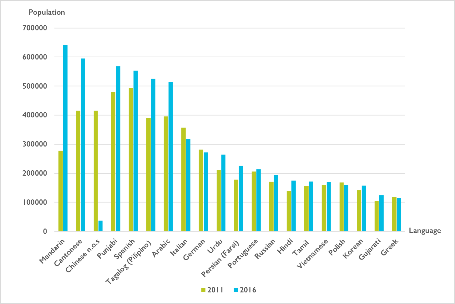 Compare: Growth of Heritage Languages Over Last 25 Years, 1991 to 2016